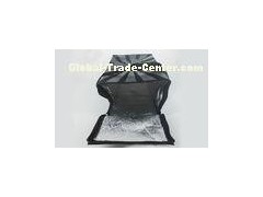 Its whole is longitudinal rectangular body,Each of its edges are straight..the surface is similar to rough.Its handle is black .The surface of the lining is heat insulated aluminum film