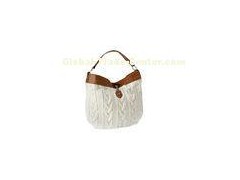 Casual Womens Medium Size White Knitted Fabric Handbag with Buttons